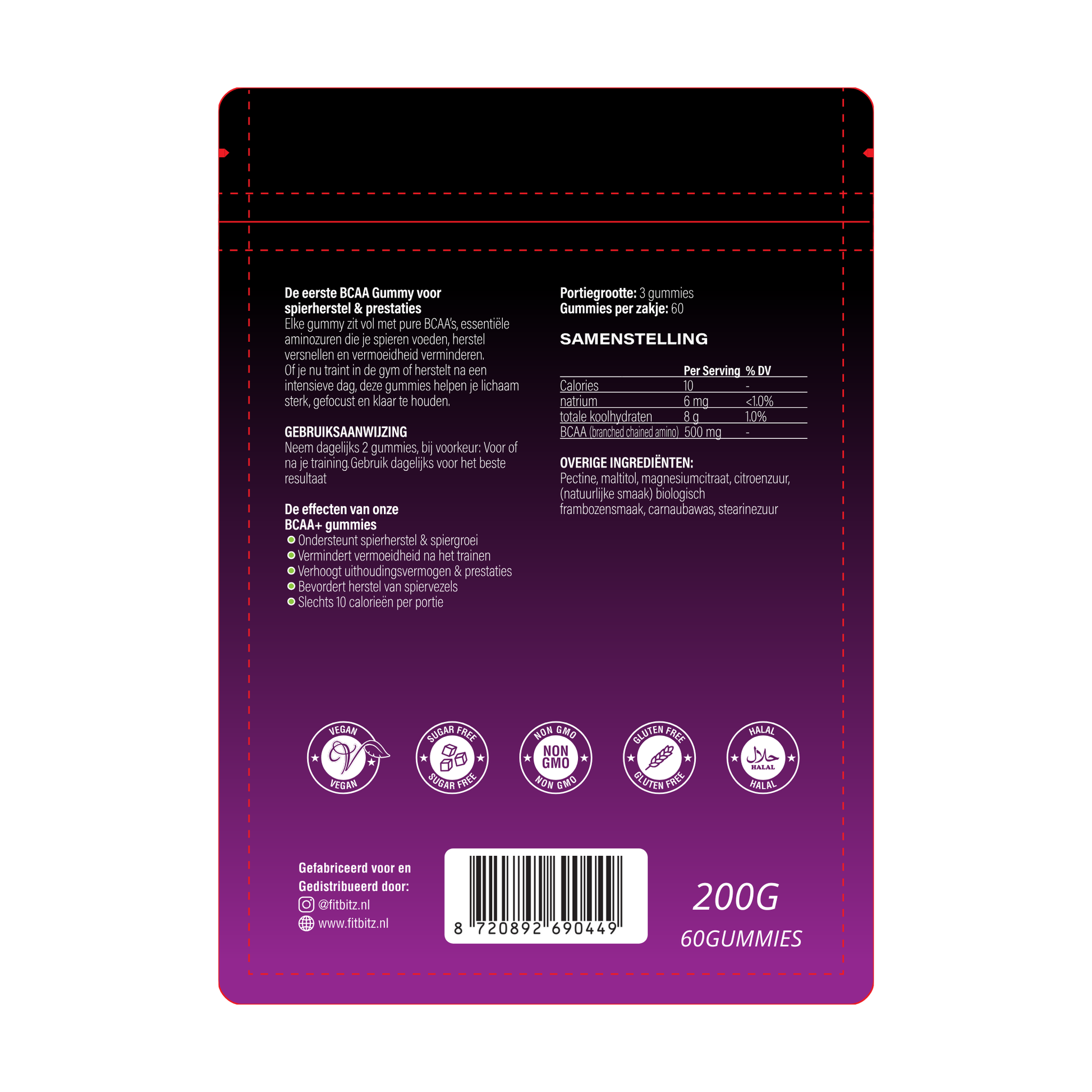 Zijn de BCAA gummies vegan en suikervrij?