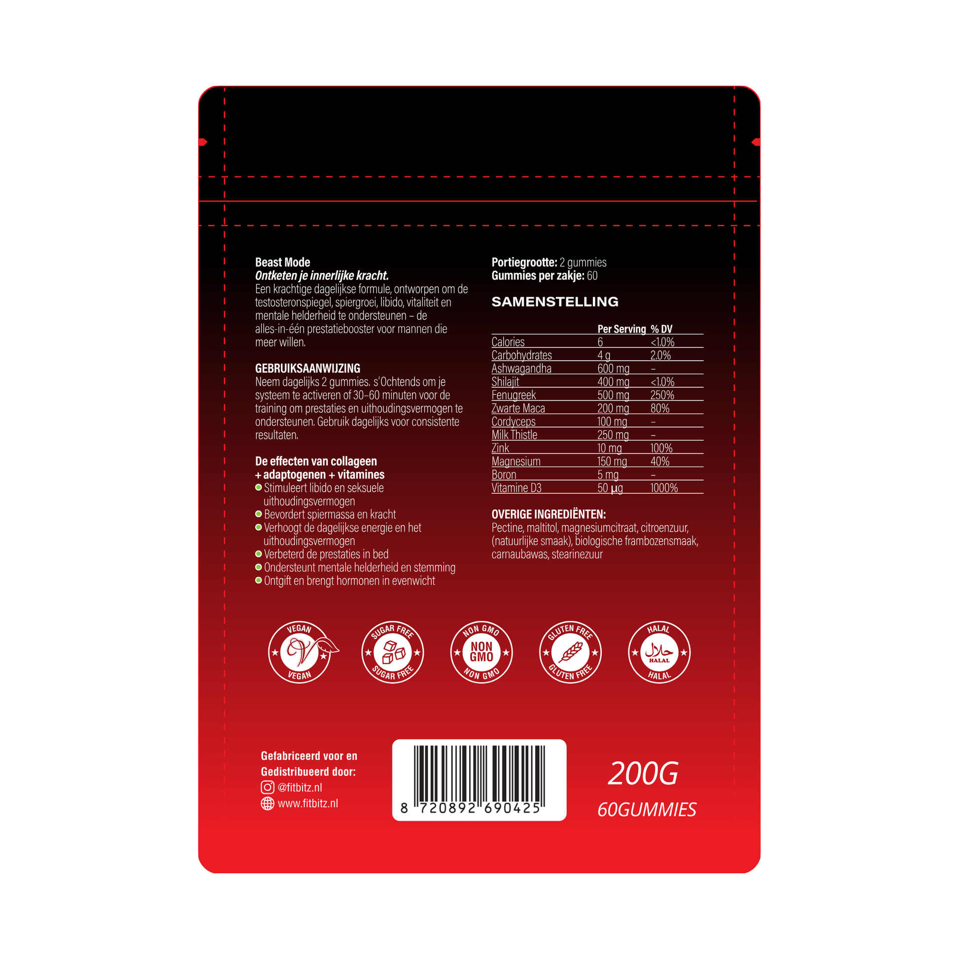 Beastmode: 2 gummies per dag