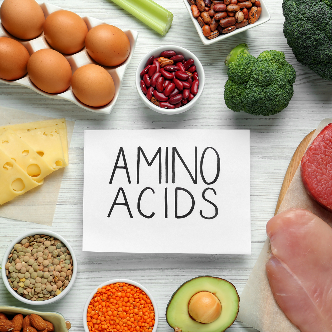 Aminozuren zijn de bouwstenen van eiwitten en maken onderdeel uit van de dagelijkse eiwitinname.